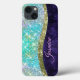 Chic iridescent purple blue faux glitter monogram Case-Mate iPhone case