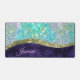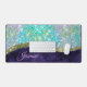 Chic iridescent purple blue faux glitter monogram desk mat