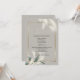 Mushroom taupe background with slight textured appearance and sparkly gold double frame, sets off this graceful array of ivory pampas grass. Smokey teal anthurium leaves edged in gold delivers a pop of colour. Modern and trendy this wedding theme is perfect for any time of year. Modern hand written calligraphy combined with a minimalist, contemporary style font layout creates an eye catching design. Let your out of town guests know about room reservations and details, easy to personalise with your own wedding details. This is part of a wedding stationery collection with matching wedding accessories. Original artwork by ©WhimsicalArtwork™ created specifically for the BarefootBride™