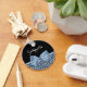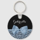 A chic and stylish dusty blue and black jaguar print keychain with a light blue ribbon tied into a cute bow. Personalise this trendy leopard style animal print design by adding the name of your teen girl. Flat printed image, not actual bow.