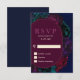 Chic jewel tones floral burgundy navy wedding RSVP card