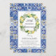 Personalise this chic Lemon Wedding Anniversary invitation with your details easily and quickly, simply press the customise it button to further re-arrange and format the style and placement of the text. Featuring watercolor lemon wreath and a beautiful mediterranean azure mosaic backside design. Matching items available in store! (c) The Happy Cat Studio.
