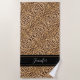 Soak up the sun rays with this Chic Leopard Print Black Script Personalised Beach Towel. It has an elegant design with a brown and black animal pattern background and black horizontal stripe on lower area. Personalised with name in modern white handwritten script lettering. Click "personalise template" option and enter your name or custom text.