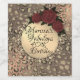 A glittery leopard print on a dusty rose pink backdrop with a gold circle in the middle where you can customise it which is adorned with an elegant gold flourish joined by three roses for added elegance. Chic glam vibes.