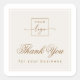 Chic, light tan brown and white business thank you sticker with your logo and the text “thank you" printed in a romantic calligraphy script font with a white border along the edge. You can change the font, font color, border color and background color with the design tool.