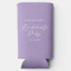 This elegant lilac purple bachelorette party seltzer can cooler features classic white script for a bride who is going to have an upscale event for her wedding. Celebrate your friend with this pastel solid color on this chic, minimalist bridesmaid gift.