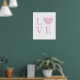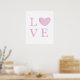 This design illustration says LOVE as an illustration of affection. The colour pink gives a warm impression that depicts feelings of affection. This poster is suitable as a wall decoration in the Nursery room to give a warm, loving impression.