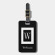 NAME IN WHITE TEXT, BLACK/WHITE TAG WITH WHITE MONOGRAM ON BLACK. BLACK BACKGROUND OR CHOOSE YOUR OWN BACKGROUND COLOR