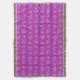 A chic, romantic Throw Blanket, with a pattern of hearts and flowers on a magenta background. From a hand-painted paper collage in the Folk Art style by Judy Adamson.