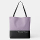 This lovely fashion forward tote bag shows the word "Maid of Honour" in white text colour over black with the upper tote bag in custom Sugared Plum. Has plenty of room for personalised text. Graphics and text are on both sides of this tote bag. Black handle. Customise further or buy as shown.