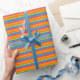 A roll of chic Giftwrap, with brightly coloured stripes in Bright Red, Orange, Yellow, Blue and Green. Part of the Posh & Painterly 'Marigold Medley' collection.
