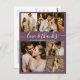 Elegant, Minimalist Mauve Script Wedding 5 Photo Collage Thank You Postcard. Modern wedding thank you card template featuring five (5) photo on the front and one (1) photo on the back. With the text "Love and thanks" in a swirly hand lettered typography script font in white on mauve or dusty plum purple background colour. Add your name, photos and thank you message. If you prefer to handwrite your note, just delete the sample text to make more space. Please contact me if you need help with this design.