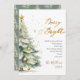 Elegant Modern Gold Calligraphy Merry and Bright Script Watercolor Christmas Tree Non Photo Christmas Cards. This festive Holiday cards features a watercolor christmas tree with decoration gold balls and confetti and a „Merry and Bright” greeting text which is written in a pretty hand lettering font in gold and white. On the reverse christmas tree pattern on dusty green background. This festive Custom Personalised Christmas Cards are a great way to remind loved ones that you're thinking of them this Winter Holiday Season.