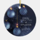 Beautiful blue Christmas tree and ornaments plus Merry Christmas and Happy New Year and your name are featured on these tree ornaments. MATCHING items in our collection.