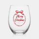 Chic Merry Christmas Red Ribbon Bow Custom Stemless Wine Glass