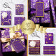 This beautiful set comes with a mix of beautiful gold script designs and gold polka dots. The amnesty purple is vibrant and contrasts perfectly with the gold script writing and snowflakes.