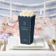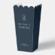 Delight wedding guests with a surprise midnight snack. This modern minimalist wedding favor popcorn box features couple names and monogram in a contemporary set of white fonts against a chic and elegant midnight blue background. This item forms part of a full wedding suite which includes matching stationary items.
