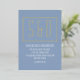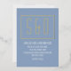Perfect wedding invitation for the minimalists. This elegant soft blue invitation features a simple style with modern script in white, big gold initials/monograms and golden foil frame. The text and monograms are easily customisable to make it all yours.