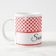Chic Minimalist Red Polka Dots Pattern Custom Name Large Coffee Mug