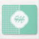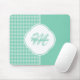 Chic Mint Green Houndstooth With Monogram and Name Mouse Pad