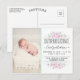Chic Mint Green & Pink Flowers Birth Announcement Postcard