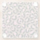 Chic glass coaster with a trendy leopard print in pink and black on a mocha mousse backdrop.