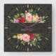 Chic Modern Black Polka Dot and Roses Personalised Square Wall Clock
