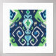 This trendy, modern chic, contemporary style colourful ikat pattern tribal print artwork in shades of blue and green, is a standout piece perfect for your living room, bedroom or guestroom. The exotic stylish decorative vibrant colours and rich texture tribal feel ikat print design will provide a splash of colour to any space. Click "customise it!" button under product photo to personalise the size of the white frame or even remove it!