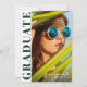 Chic Modern Emerald Green White Photo Graduation Announcement