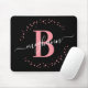 Girly, modern, elegant, trendy, pink and black, white monogram initial name script custom personalised monogrammed mousepad. Featuring a monogram initial and a girly name script in a hand lettered calligraphy swash tail font and dotted circle frame around your monogram. Perfect feminine gift for girls, sister, mother, birthday, wedding, bridal shower, sweet 16 birthday party, makeup artist, beauty salon owners, fashion blogger or anyone who loves pretty stylish things.