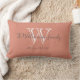 Chic Modern Monogram Family Name Cute Keepsake Lumbar Pillow. A personalised monogram initial and your family's last name and wedding date in script lettering on a salmon background. Makes a unique cute gift for newlyweds. Lovely for newly weds new life together or for your family room. Click personalise this template to customise it quickly and easily. Ships Worldwide fast.