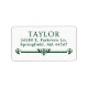 Chic modern dark green on white return address labels featuring a classic serif font above a clean lined scroll for a minimalist feel.