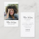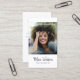 Modern and professional photography business cards featuring your photo in a simple white frame with trendy minimalist script typography. Add your contact information to the back. This stylish design includes three social media icons and a field for your username.