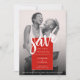 Make your wedding announcement memorable and stylish with this simple chic save the date wedding card featuring a minimalist red, black, and white design, complemented by a striking white script. With a lovely photo of the happy couple on the front and a sleek black background on the back, it's the perfect canvas for customisation. Personalise the text and photo to create your own modern elegant save the date card, available in both print and digital download formats.
