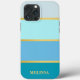 This sophisticated design features an array of blue stripes in varying shades, elegantly accented with sleek gold lines. Personalise it with your name for a unique touch that blends modern style with a timeless aesthetic. Perfect for those who appreciate a refined, contemporary look, this case offers both premium protection and a stylish, personalised accessory for your iPhone.
