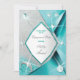 This stunning invitation features a turquoise green background with sparkling diamonds and jewels that add a touch of bling and sophistication.