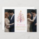 Chic Modern Wedding Pink Christmas Tree 2-Photos in Faux Gold Holiday Cards Save the Date Cards.