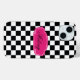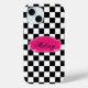 Elevate your style with this trendy black and white chequered iPhone cover featuring a bold hot pink name label. The perfect fusion of classic and modern, this accessory not only provides protection but also adds a touch of sophistication to your device.