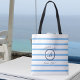 Chic Monogram Blue and White Striped Beach Life Tote Bag