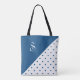 Chic Monogram Blue White Polka Dot Geometric Tote Bag
