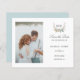 Featuring a chic floral crest in subtle palette of yellow gold, dusty blue and pale blue surrounding your monogram or initials with your name, wedding date and place in a elegant combination of cursive and capital letter, this stunning but cheap photo wedding save the date is perfect for any formal celebration, or elegant wedding. Personalise with your monogram, initials or duogram at the top using the template Card reverse to a matching light powder blue with space for additional text, like formal invitation to follow, rsvp, wedding webside or other important information.