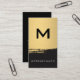 Chic Monogram Faux Metallic Gold Brushed Black Business Card
