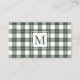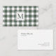 Chic Monogram Green and White Plaid Pattern Business Card