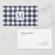 Chic Monogram Navy Blue and White Plaid Pattern Business Card