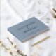 This chic dusty blue wedding guest book is the perfect way to cherish memories of your special day. It features your names in elegant and classic serif typography, monogrammed in silver foil, and your wedding date. Personalise with your photo on the back and add a custom title on the spine.
