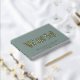 This chic and elegant dark sage green wedding guest book features your choice of real gold, silver or rose gold foil, your monogram initials in large classic serif typography, your names and your wedding date. You can personalise it with your photo on the back and a title on the spine.
