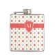 A chic Hip Flask to personalise, to personalise with your Monogram or Initials, with a pattern of Red, Green and Yellow Polka Dots on a White Background. Part of the Posh & Painterly 'Rangoli' collection, this pattern can be adjusted to fit any Flask.