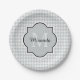 Chic Monogram Soft Grey Houndstooth With Name Paper Plate