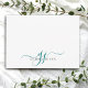 A chic modern stylish tealinitials monogram on note cards, with a dramatic script initial with swashes and your full name in a modern serif type. Simple elegance. Be sure to select your preferred size for the card before purchasing.