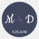 Perfectly chic customisable navy and white stickers with bride and groom monogram initials and wedding date